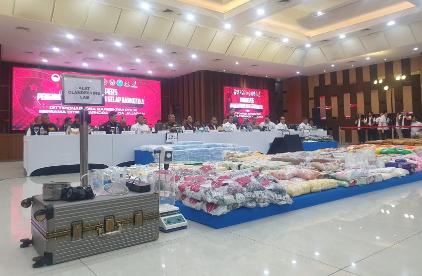 Polri melakukan penyitaan narkoba berbagai jenis sebanyak 197,71 ton. Dari total barang bukti tersebut, polisi melakukan penahanan terhadap 51.763 orang. Foto/Puteranegara